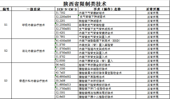 根據(jù)《醫(yī)療技術臨床應用管理辦法》、《國家衛(wèi)生健康委辦公廳關于印發(fā)國家限制類技術目錄和臨床應用管理規(guī)范(2022年版)的通知》及《陜西省醫(yī)療技術臨床應用管理辦法實施細則 (陜衛(wèi)醫(yī)發(fā)〔2020〕64號 )》等文件要求,醫(yī)教部于前期梳理各科室上報材料,并組織院級醫(yī)療技術管理委員會審核論證,對于我院已開展的國家級和省級限制類技術已完成備案工作。現(xiàn)將我院已開展的限制類技術公布如下。