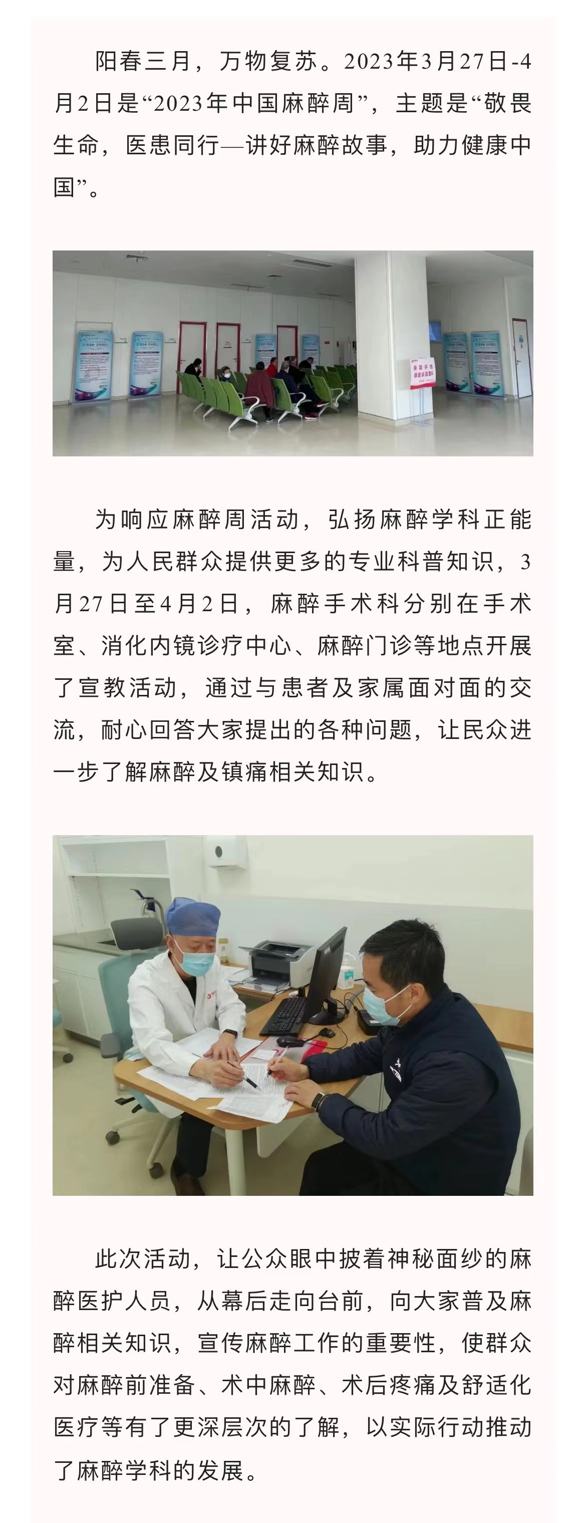 敬畏生命,醫(yī)患同行——我院開展“中國麻醉周”宣教活動