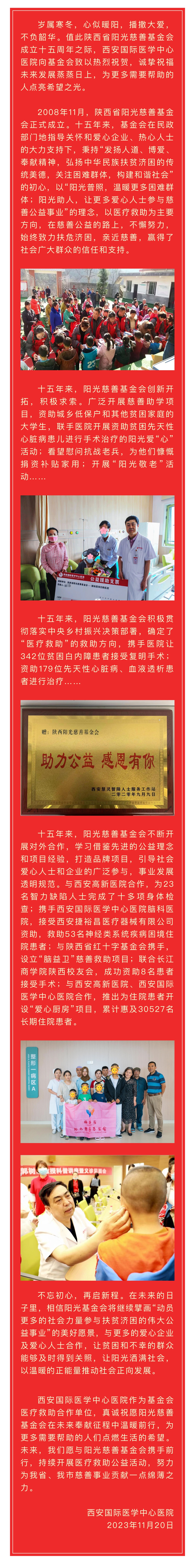 熱烈祝賀陜西省陽光慈善基金會(huì)成立十五周年