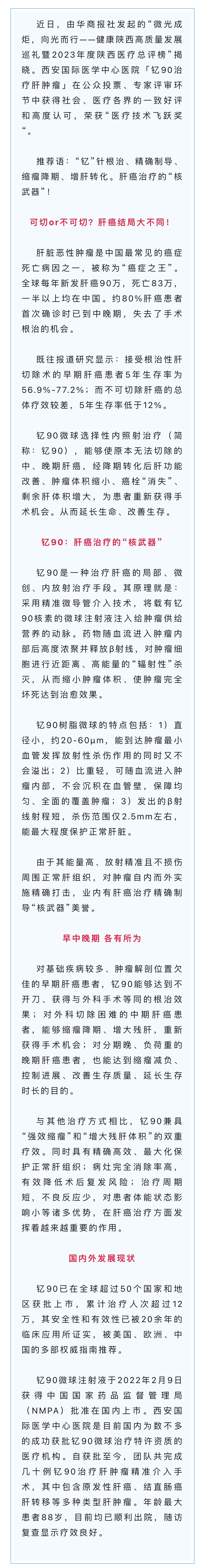 我院釔90治療肝腫瘤榮獲2023年度陜西醫(yī)療總評(píng)榜“醫(yī)療技術(shù)飛躍獎(jiǎng)”