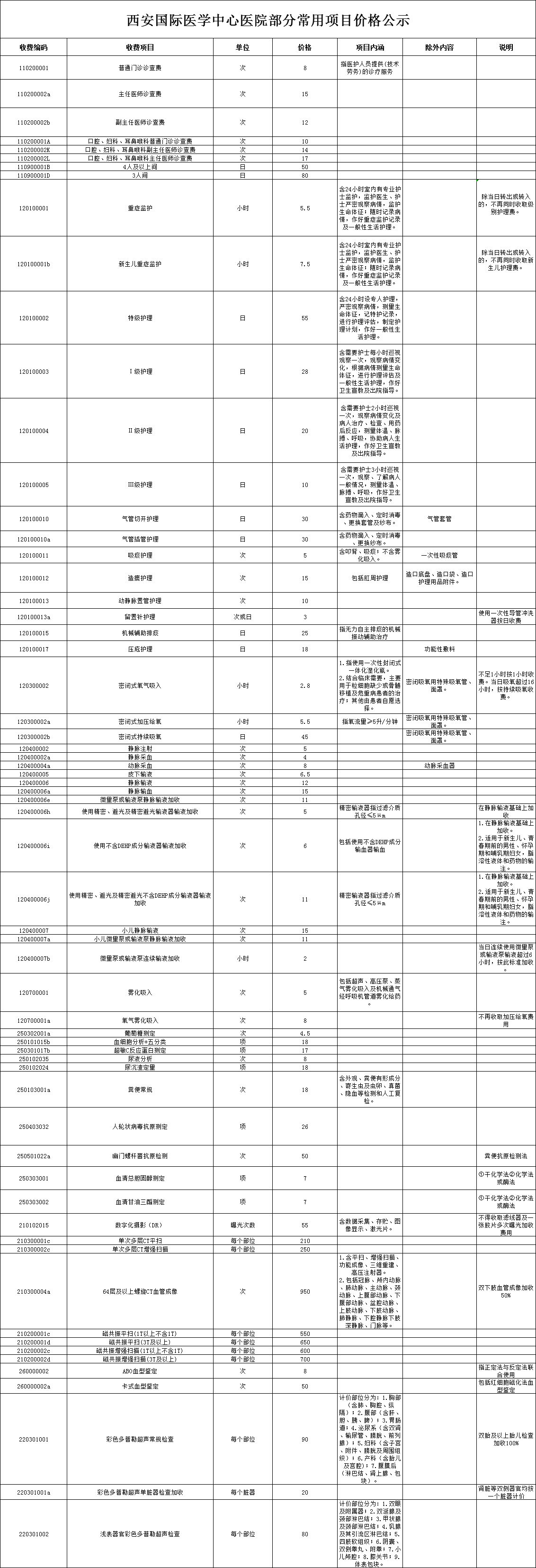 西安國(guó)際醫(yī)學(xué)中心醫(yī)院部分常用項(xiàng)目?jī)r(jià)格公示