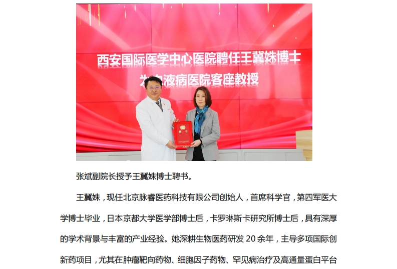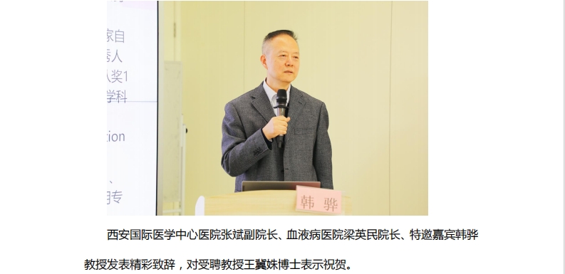 王冀姝博士受聘為西安國際醫(yī)學中心醫(yī)院血液病醫(yī)院客座教授