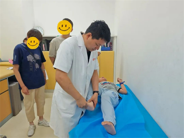 另一邊,楊寧主任近距離觀察孩子的運動模式,手把手指導(dǎo)家長如何進行科學(xué)有效的家庭康復(fù)訓(xùn)練,細致講解每一個動作的要領(lǐng)和目標,讓康復(fù)融入日常生活。
